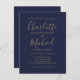 Namnteckning av marint blått och Guld skript Bröll Inbjudan Vykort