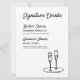 Anpassa pub i bröllop med den här eleganten Namnteckning menymallen Drinks, perfekt för att visa dina unika cocktail-markeringar. Det här tecknet har en minimalistisk svartvit design med en elegant bild av champagneflöjten och tillför en sofistikerad pekpenna till din evenemangsdekalor. Vare sig det gäller bröllopsmottagning, förlovningsfest eller repetitionsmiddag erbjuder den här mallen ett modernt och snyggt sätt att presentera personligens dryckesmeny.