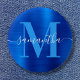 Skapa egna knappar för giftig personlig namn och monogrammet. Royalets blå övertoningsgrafik färgad digitalkonsgrafik. Blått och vitt contemporary monogram med elegant namnteckning stil kalligrafi.