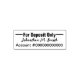 En anpassningsbar frimärke gör insättandet av checkar till en häck. All text kan redigeras, ändras eller tas bort. För inlåningen ligger bara överst. I mitten kan du ändra texten så att ditt namn visas i ett kursivt skript. I grund finns platshållarsiffror för ditt bankkontonummer.