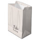 Presentera dina presenter i stil med en Snyggt modern anpassningsbar monogrampresentväska med ett modernt minimalistiskt namnteckning typografi parad med sans-serif-teckensnitt i minsta svart över rosa. Denna väska är både sofistikerad och minimalistisk, skapar den lämplig för en mängd tillfälle, från bröllop och födelsedagar till företagshändelser. Dess system för svart och blek rosa neutralt färg ger en tidlös appell som garanterar att din gåva framträder på bästa möjliga snyggt.