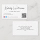 affärskort för anpassningsbar av chic med ditt företag namn eller varumärke i en snyggt namnteckning skript och typ av verksamhet nedan i enkel, modern text. Ange URL:en för webbplatsen adress för att skapa en QR-kod för kunder och kunder som ska söka efter en lista över produkter, tjänster, timmar osv. och lägg till ditt intagram- och facebook-användarID för kunder som ska följa dig på social-media. Lägg till ytterligare information på baksidan eller lämnan tom.