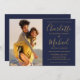 Namnteckning skriptfotomarblått och Guld Bröllop Inbjudningar