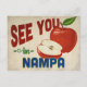 Ett charmerande vykort av typen Nampa Idaho vintage resor med ett vackert rödäpple, tillsammans med texten av roligt retro stil som säger: "Se dig i Nampa"