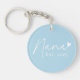 Blåfotonyckelkedja som innehåller texten "Nana" i ett handskrivet stil-skript med lite hjärta i slutet och året nedan.