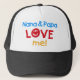 Nana och pappan älskar mig T-tröja, muggar, klistermärkear, kort och mer med textdesign av blått, rött och gult.
