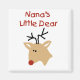En renare med röd näsa och röd text som lyder "Nanas lilla kära" på anpassade tote bags, T-shirts med mera.