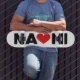 Namn Naomi med brev ersatte med ett rött kärlek-hjärta. Färg kan ändras.