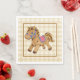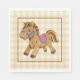 Napkin med söt leksak-häst och brunt gingham-bakgrund. Underbar för babydusch eller småbarn födelsedagsfester.
