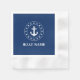 Nautical Boat Namn Anchor Stars Navy Blue Cocktail Napkin