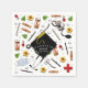 Sjuksköterskeeleverna, blommorna och en studentmössa i studentfesten tallrikar.