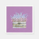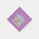 Napkins med rosa och blåa blommor i en faux wood grått container. Blommorna är Lavender och Daisy. Denna utformning finns också på en papper skylt. Tack vare Kreativet Fabrica för en del av inslag i designen.