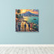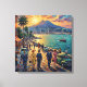 Golden evening light spills across the Naples waterfront as elegant strollers, vintage cars, palm silhouettes, and the calm blue bay gather beneath the dramatic presence of Mount Vesuvius. This luminous canvas art blends Italian coastal glamour, historic travel poster charm, Mediterranean romance, and painterly color into one unforgettable scene. Perfect for hotels, guest rooms, or refined interiors seeking warmth, nostalgia, and seaside sophistication.