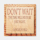 Napoleon Backe citat i tid: "Vänta inte. Det blir aldrig bara höger." Att motivera och inspirera.