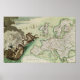 Illustrerad vintage karta som visar Napoleon Bonaparte rider en kariot över havet. Karta hedrar minnet av Napoleons kampanj för att invadera England. © Bridgeman Bilder