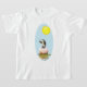 En liten penguin är sitta på ett runt sten i ett tidvattenfritt bassäng, med huvudet böjt när det sjunker, med det varma sol som slår ner på det. Den digitala målningen är i en lång ovalform. Upphovsrätt ©2017 Kimberly J Tilley.