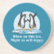 När man är på tunn is kan det lika gärna dansa. Lustigt och otäckt slagord med två pingviner som dansar tillsammans på sprickad is. Vad är det för mening med att oroa sig när du inte kan ändra omständigheterna? Oroa dig inte, var lycklig! Med blå bakgrund. Winter Penguin Design.