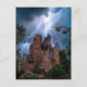 På den här scenen är den mäktiga naturkraften på fullt som en tungrodd strejka ett bergstoppe mot bakgrund av ett tydligt blå himmel.