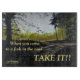 NÄR DU KOMAR TILL EN FORK I STYRELSEKORTET FÖR VÄGLAS ÄR ETT OBJEKT I KAMMAREN FÖR SUNSHINA-reproduktioner av bra som placeras på produkter som är designade för använda hemma eller på kontoret. Konstruktionen läggs på en återgivning av ett ursprungligt landskap av Kentucky-konstnären och -författaren GERRY K. FURGASON. Arbetet ingår i hennes SOUTHERN DRAWLS-serie med ord att leva med och formuleringar att minnas, liksom hennes samling PRAYERS OCH QUOTES.