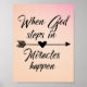 När Gud går in Poster Miracles Happen Quote med ljuskorall/rosans övertoningsbakgrund, hjärtpilens accent med penselskript. Mer på Christian Quotes Shop. Länk nedan: