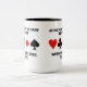 Visa din bryggbrons/dubbla bryggattityd med det här mugg, med fyra kort kostym tillsammans med följande broobservation: "As the Play of the Hand Develops Watch How the Odds Change" (Som Hand Utvecklar-spelets bevakning av hur ODS förändras). Du behöver inte vara en levande bryggspelare för att njuta av!