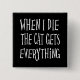Den ultimata knappen för mammor och kattälskare! En fyrkantig knapp med roligt-typografi NÄR JAG DÖR KATTEN FÅR ALLT i fetstilt vitt brev. Bakgrunden färg i typografin är anpassningsbar. Klicka bara på knappen "Anpassa!" och ändra det svarta färg till valfri färg i diagrammet "Skriv ut bakgrund Färg".
