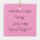 Den här roliga prydnaden lyder: "När jag säger "Sjunga", säger du "Hur högt?" Med en 8va-symbol för tonvikt - perfekt för ledare och musiklärare.
