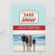 Strandtema Julkort med text i formatet eller stilen av en Trucker Cap Patch för dem i tropiska klimat med talesättet "när livet ger dig sand låtsas att det är snö"