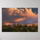 "När mars blåser hornet fylls dina hönor med hö och maj." Bakom silhuetterna bakom att vika vår träd brinner en blixt genom de sänkta molnen av ett solnedgång himlar.