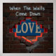 Den här designen fångar en kraftfull metafor för att visa en gömt sanning. Den har en vättad tegelvägg med en ojämn öppning, genom vilken ett tecken med ord "KÄRLEK" delvis syns. Tecknet har ett rent, fetstilt stil med en varm, röd glöd. Uttrycket "När Komen nedför väggarna" står i ett lätt graffiti stil på tegelstenen och symboliserar det ögonblick då vi väljer att avslöja vad som har gömts.