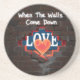 Den här designen fångar en kraftfull metafor för att visa en gömt sanning. Den har en vättad tegelvägg med en ojämn öppning, genom vilken ord "KÄRLEK" är delvis synlig och glödande med ett varmt, rött ljus. Uttrycket "När Komen nedför väggarna" står i ett lätt graffiti stil på tegelstenen och symboliserar det ögonblick då vi väljer att avslöja vad som har gömts.