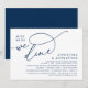Meddela och er lyckliga allt efter i stil med vår moderna vackra blåa tematdesign för marinen (när vi har ätit middag), inbjudet bröllop-kort för elopement firande. Det är idealiskt för par som har beslutat att fira sin bästa dag. Med sin sofistikerade men lekfulla utformning kommer inbjudan säkert att ange tonen för en händelse som inte kan glömmas bort. Inbjudningskortet har ett modernt och minimalistiskt tema för skriptutformning, vilket gör att du får lite elegans i firande. Designad av TeeshaDerrick