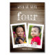 Ett modernt och mer originellt sätt att anpassa dina bordskort med barndomsbilder av brud och brudgum i just den åldern (standard är fyra). Platshållarbilderna av en liten flicka (bruden) och en liten pojke (brudgummen) har retro-vita ramar, överlappande, i den nedre halvan. Namnen på bruden och brudgummen står skrivna på bildernas nedre vita ramar. I den övre delen finns meddelandet "när vi var fyra" med åldern skriven med stora vita kritliknande handskrivna bokstäver och resten ovanför, i mindre vita versaler (handskrivna bokstäver). I den nedre delen, under de två bilderna, finns datumet, också skrivet som med vit krita. Bakgrunden är en mörk trädstruktur.
