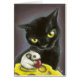 Ursnygg svart katt och lite mus som knaprar på en cranberry. Från pastellfärgad målning för originalolja vid den Tanya förbindelsen