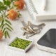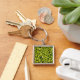 Närbild av grön småsten fyrkantig silverfärgad nyckelring