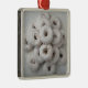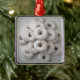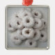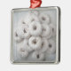 Närbild av pudrade munkar i en plätera julgransprydnad metall