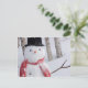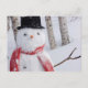 Närbild av snöman med halsduk och toppmössa helg vykort