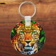 Närbild Jaguar Leopard Ansikte med Gröna Ögon Nyckelring