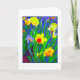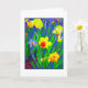 Kort med ljusa, glada narcisser på framsidan. En digital målning från ett fotografi. Tomt insida för ditt eget meddelande.