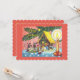Vintage Nativitetscen med det välsignade Mor, baby Jesus, kor, manger och de tre västliga Manarna under Julgran. Ett stort ljus ljus på scenen. Omtryckt som denna vackra julinbjudan att fira julens sanna innebörd.