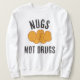 Nugs Not Drugs är ett enkelt budskap som säger allt. Det är bättre att spendera pengarna på kycklingnuggar än på olagliga ämnen. Se grinig/"stressad" ut. Underbar gåva till vänner som tycker om att äta snabbmat och till dem som tycker om att avsluta livsmedelsutmaningar.