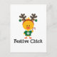 En söt Festive-Chick kommer in i helgdag-andan medan den håller i handen candy cane och bär en grönt julsvett med en snöflinga på den och ett renhuvudband med öron och prydnadsföremål som hänger av antlarna. Art © Chrissy H. Studios, LLC. Alla Höger reserverade.