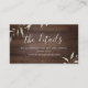 Modern botaniskt grönt löv på mörk lada, med modernt manus och ett par namn på baksidan, enkelt och elegant, underbara bröllop-detaljer sätter in kort för giftigt botaniskt trädgårdsbröllop i höns och vinter. Visa alla matchande delar i samlingen.