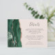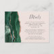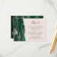 Den lämnat kant i denna elegant har ett kort för modern detaljinformation om inneslutningen i bröllop och en framväxande grönt vattenfärgsagat gräns som trimmas med faux ro guld glitter. Rubriken visas i handskriftsskript, med anpassade nedan i färgkodsteckensnitt för kol-grått på rosa. Den omvända sidan har en matchande framväxande grönt och ro guld agate-design.