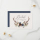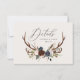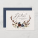 Kortet för rustiska barr-, blommigt- och stag-antlers bröllop. Med vackra vattenfärgade blad, vita blommigtar, träsegment och manuskript. Detta moderna inbjudan kommer säkert att sätta stil för ert kommande party.