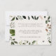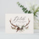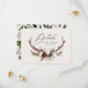 Kortet för rustiska barr-, blommigt- och stag-antlers bröllop. Med vackra vattenfärgade blad, vita blommigtar, träsegment och manuskript. Detta moderna inbjudan kommer säkert att sätta stil för ert kommande party.