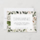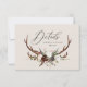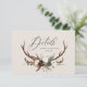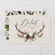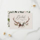 Kortet för rustiska barr-, blommigt- och stag-antlers bröllop. Med vackra vattenfärgade blad, vita blommigtar, träsegment och manuskript. Detta moderna inbjudan kommer säkert att sätta stil för ert kommande party.