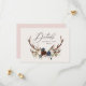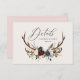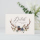 Kortet för rustiska barr-, blommigt- och stag-antlers bröllop. Med vackra vattenfärgade blad, vita blommigtar, träsegment och manuskript. Detta moderna inbjudan kommer säkert att sätta stil för ert kommande party.