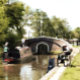 En konstkonstruktion av en smalbåt som närmar sig ett lås och en man som fiskar. Kanalbåtar, som i Förenade kungariket kallas smalbåtar, användes ursprungligen för att transportera varor runt land. De används nu främst för fritid och lockar människor från hela världen att njuta av vår landsbygd. Dessa båtar ser mycket söt ut med sina ljusa färgader, traditionellt blåa, röda eller grönt. Blommor och slottsdesigner är också en del av de mer traditionella båtarna.