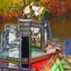 En konst av en smalbåt skorsten och en gammal dekorerad lampa.Kanalbåtar, som i Förenade kungariket kallas smalbåtar, användes ursprungligen för att transportera varor runt land. De används nu främst för fritid och lockar människor från hela världen att njuta av vår landsbygd. Dessa båtar ser mycket söt ut med sina ljusa färgader, traditionellt blåa, röda eller grönt. Blommor och slottsdesigner är också en del av de mer traditionella båtarna.